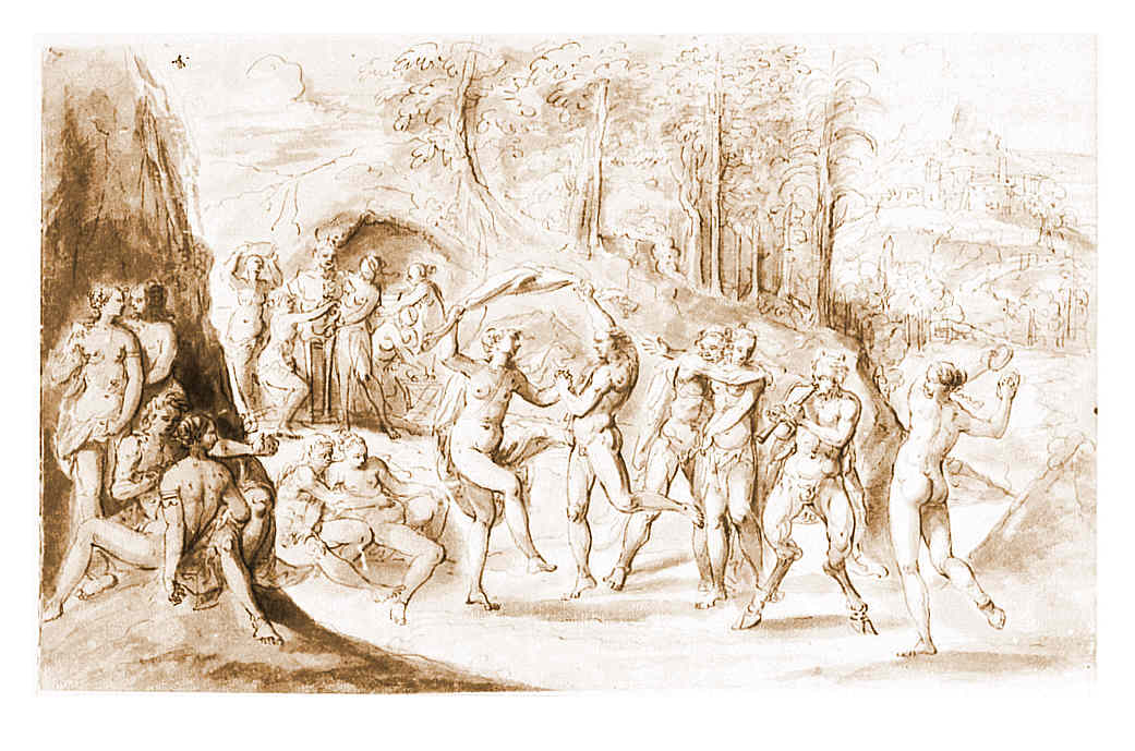 Tanzende Nymphen mit Satyrn