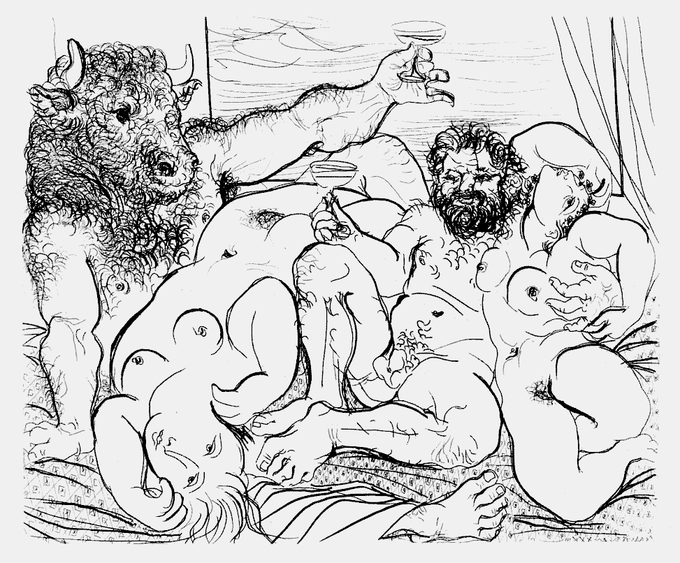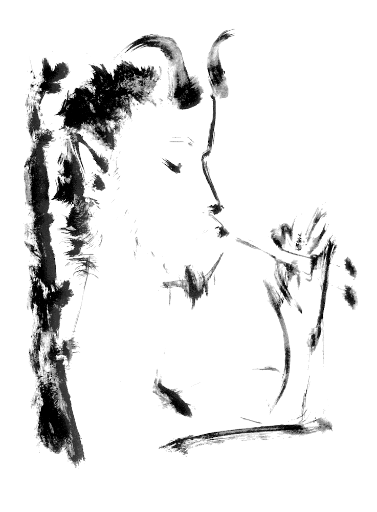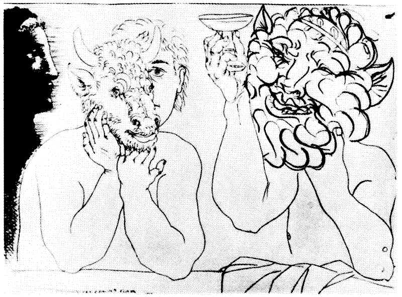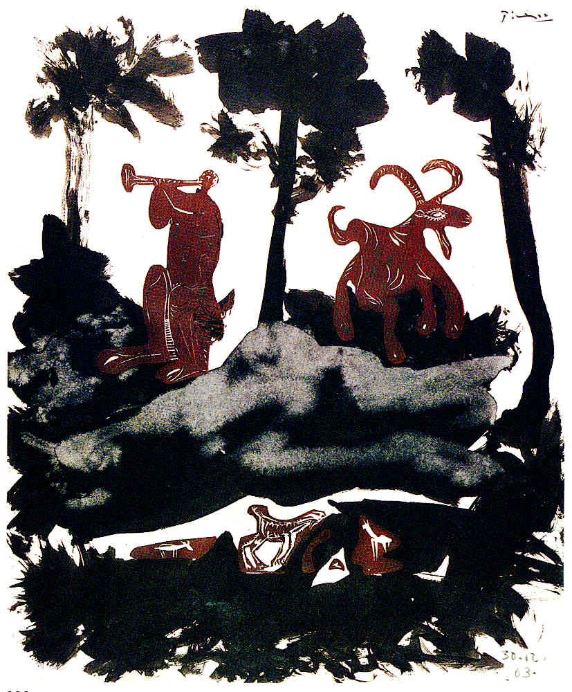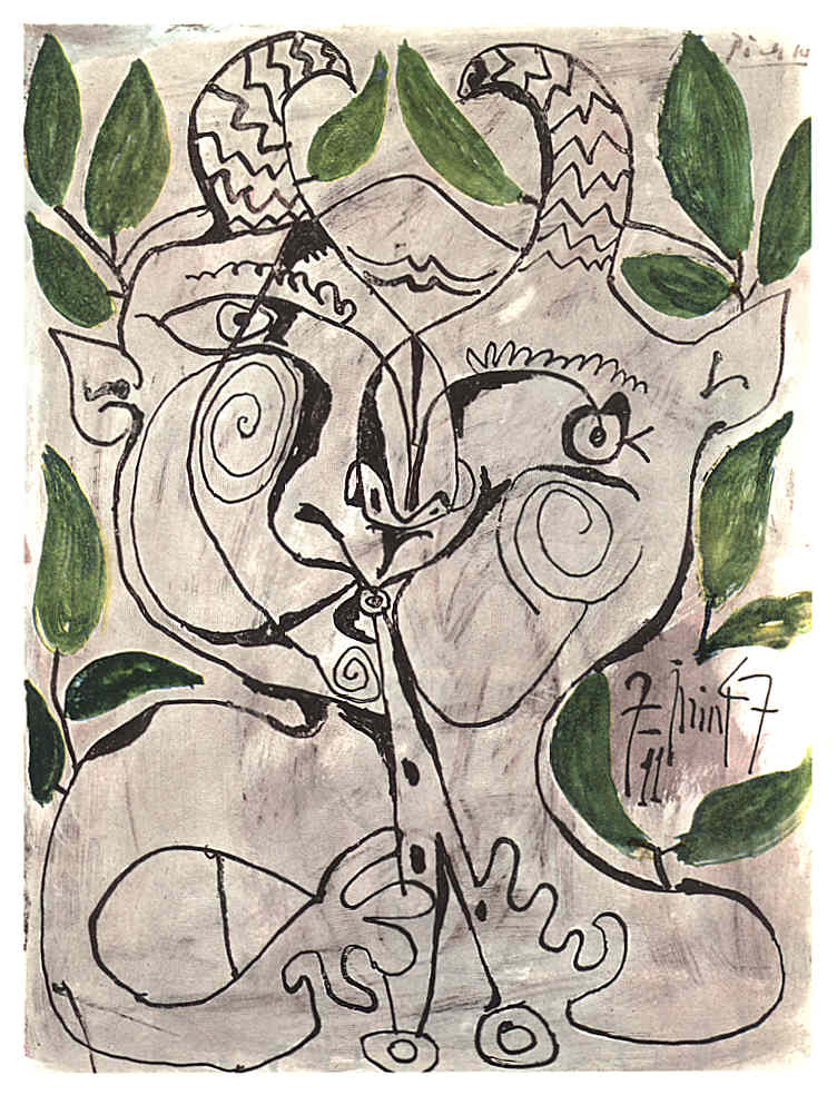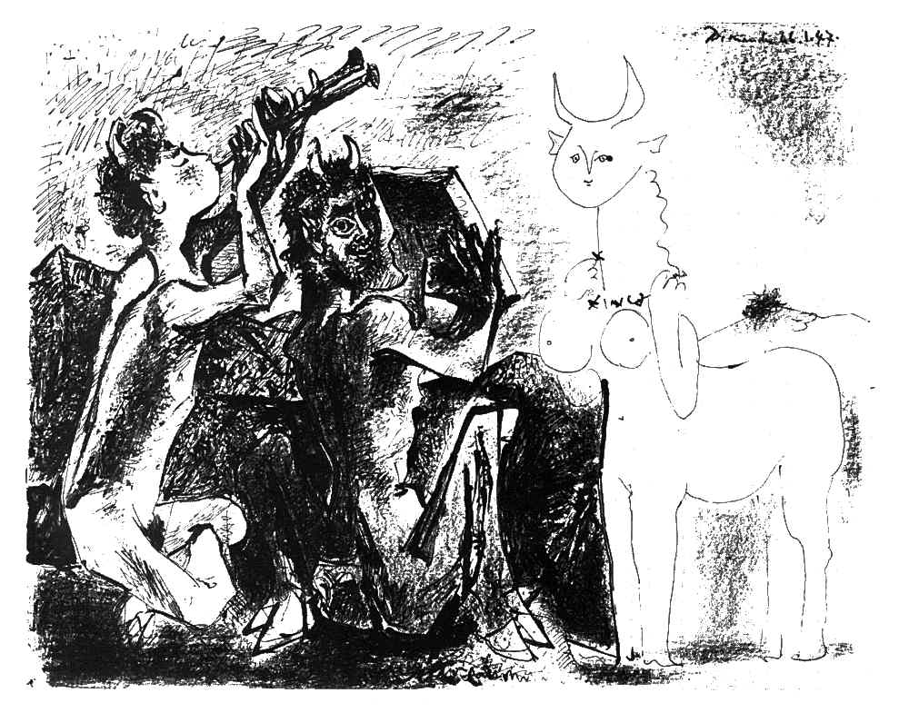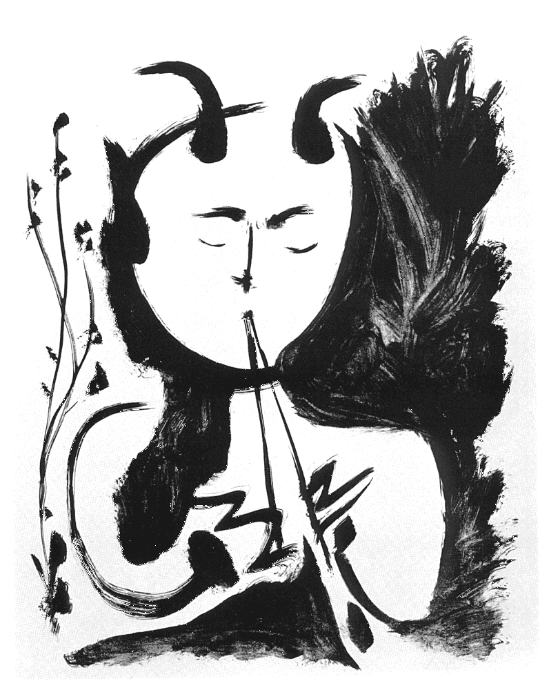 Wie dem Minotaurus kommt auch dem Faun in Picassos persönlicher Mythologie eine Schlüsselstellung zu. Man darf wohl sagen, dass diese Figur mit ihren unschuldigen tierischen Gelüsten, ihrer Vorlieb für ein natürliches, ungehemmtes Leben, ihrer Kunst, zu verführen und zu unterhalten, dieses verschmitzte und verspielte Geschöpf die Verkörperung vitaler, vor allem sinnlicher Züge im Wesen des Künstlers darstellt.