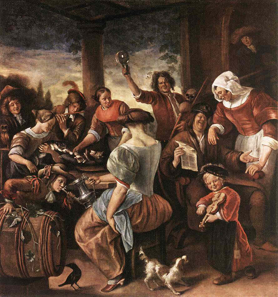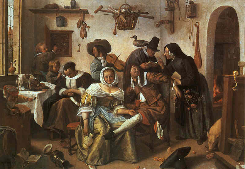 Die Genremaler brachten den menschlichen Schwächen große Sympathien entgegen. Sie teilten mit ihren Mitbürgern die übermütige Lebenslust und die Freude am Genuss, obwohl sie in der Kirche ständig zu Zurückhaltung, Vernunft und Disziplin aufgefordert wurden. Aber indem die Moralpredigt in den schönsten Farben ausgemalt wurde, reizten die Bilder selbst schon wieder dazu, sich den Sinnenfreuden zu überlassen. Und je verführerischer die Sinnlichkeit seiner Bilder, desto höher war ein Maler in Holland geschätzt. Diese gewollte Ambivalenz macht den Reiz der Genremalerei aus.