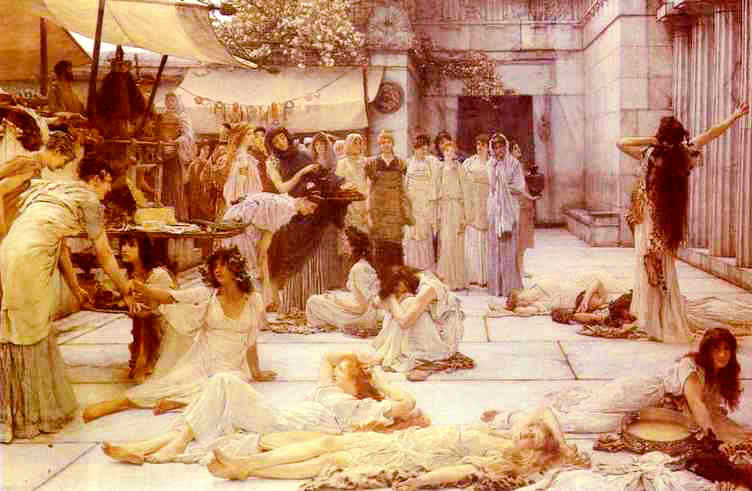 Sir Lawrence Alma-Tadema, der Maler der "Victorians in togas", war einer der erfolgreichsten Maler des 19. Jahrhunderts. In Holland geboren übersiedelte er 1870 nach England, wo er den Rest seines Lebens verbrachte. 1879 wurde er als vollwertiges Mitglied in Royal Academie of Arts aufgenommen und von der Königin zum Ritter geschlagen.