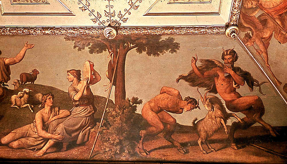 Pan spielt die Panflöte zum Tanz
