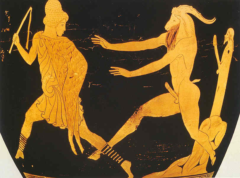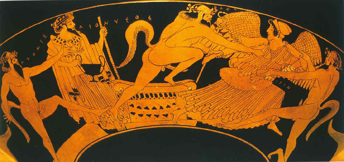 Satyrn verfolgen im Beisein von Dionysos die Iris